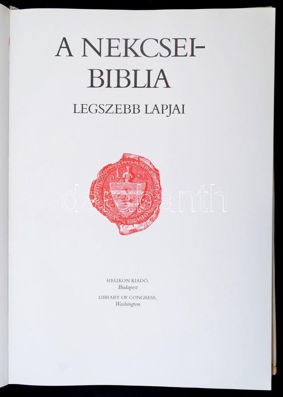 A Nekcsei Biblia legszebb lapjai. Bevezetőt írta Dana J. Pratt, a képmagyarázatokat írta Lévárdy Ferenc, a hasonmás kiadást gondozta és tervezte Szántó Tibor. Budapest - Washington, 1988, Helikon - Library of Congress. Kiadói velúrkötés, kissé szakadozottkiadói papír védőborítóban, kiadói papír védőtokban.