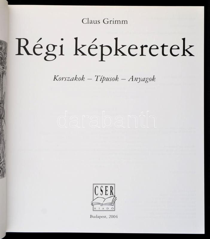 Claus Grimm: Régi képkeretek. Korszakok - típusok - anyagok. Fordított... https://www.darabanth.com/hu/308-Gyorsarveres/308.0/Konyvek/Konyvek-Epiteszet-muveszet~500001/Claus-Grimm-Regi-kepkeretek-Korszakok--tipusok--anyagok-Forditotta-Dr-Szule-Denes-Bp-~II1673986