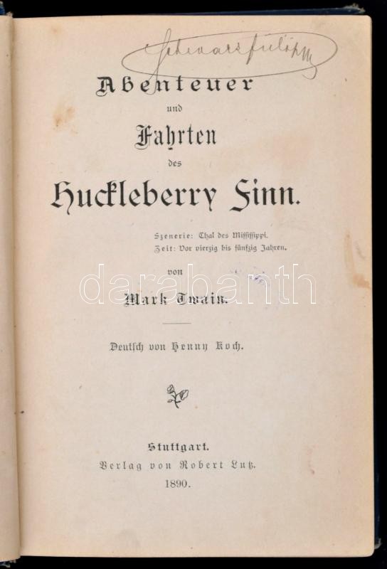 Twain, Mark: Abenteuer und Fahrten des Huckleberry Finn. Stuttgart, 18... https://www.darabanth.com/hu/308-Gyorsarveres/308.0/Konyvek/Konyvek-Idegen-nyelvu-konyvek~500016/Twain-Mark-Abenteuer-und-Fahrten-des-Huckleberry-Finn-Stuttgart-1890-Robert-Lutz-Diszes-karto~II1674333