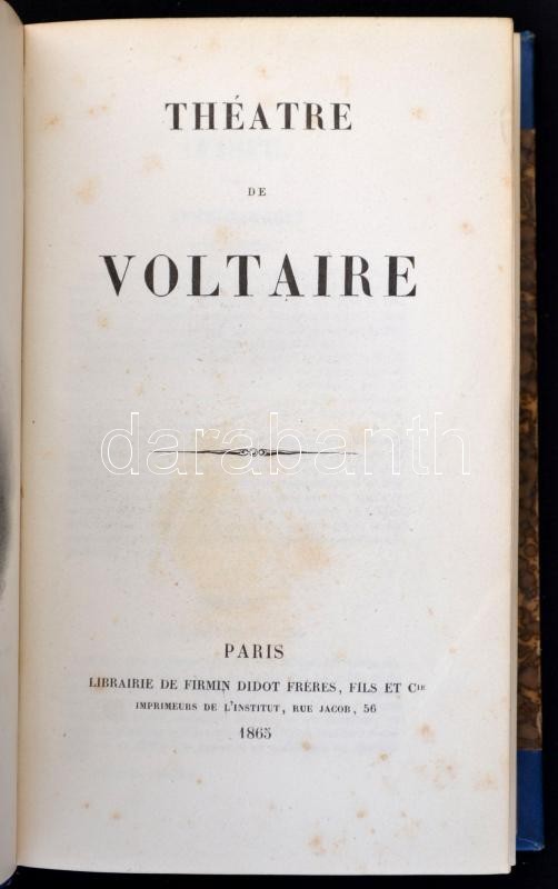 Voltaire: Théatre de Voltaire. Paris, 1865, Firmin Didot. Aranyozott gerincű félvászon-kötés, francia nyelven./
