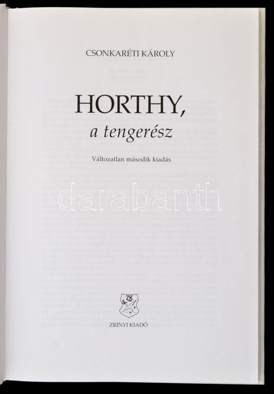 Csonkaréti Károly: Horthy, a tengerész. Bp.,1993, Zrínyi. Második kiad... https://www.darabanth.com/hu/308-Gyorsarveres/308.0/Konyvek/Konyvek-Militaria-Katonasag~500006/Csonkareti-Karoly-Horthy-a-tengeresz-Bp-1993-Zrinyi-Masodik-kiadas-Kiadoi-kartonalt-p~II1671316