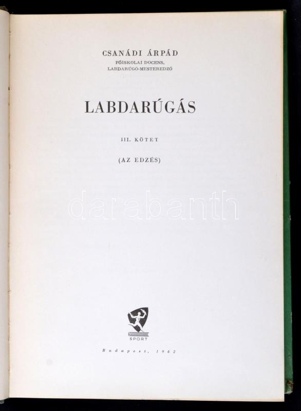 Leírás: Csanádi Árpád: Labdarúgás III. kötet. (Az edzés.) Bp., 1962, Sport. Kiadói félvászon-kötés, kopottas borítóval.
