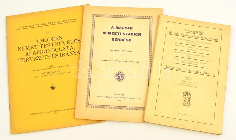 A magyar nemzeti stadion kérdése. (Második ismertetés.) Különlenyomat a Testnevelés I. évf. Bp., 1928, Stephaneum. Kiadói papírkötés.