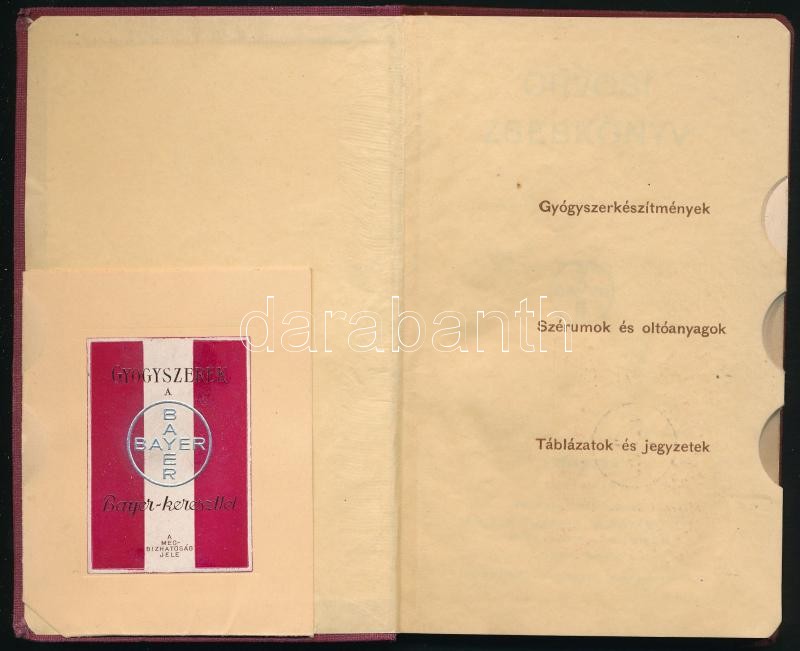 Orvosi Zsebkönyv. Bp.,(1941), Bayer Leverkusen-Magyar Pharma Gyógyáru ... https://www.darabanth.com/hu/308-Gyorsarveres/308.0/Konyvek/Konyvek-Termeszettudomany-medicina~500009/Orvosi-Zsebkonyv-Bp-1941-Bayer-Leverkusen-Magyar-Pharma-Gyogyaru-Rt-Kiadoi-egeszvaszon-k~II1672457