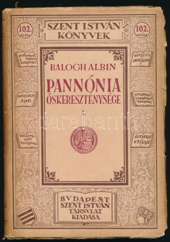 Balogh Albin: Pannónia őskereszténysége. I. kötet. Történeti rész. Szent István Könyvek 102. szám. Bp., 1932, Szent István-Társulat. Kiadói papírkötés. Ritka!