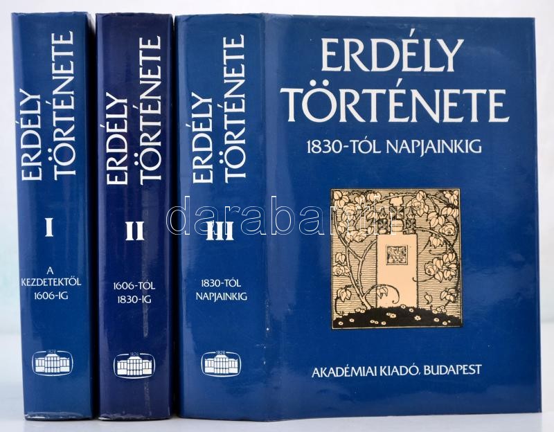 Köpeczi Béla (szerk.): Erdély története napjainkig I-III. kötet. Budapest, 1988, Akadémiai Kiadó. Kiadói egészvászon kötésben, kiadói papírborítóban, kissé karcos papírborítóval. Jó állapotban.
