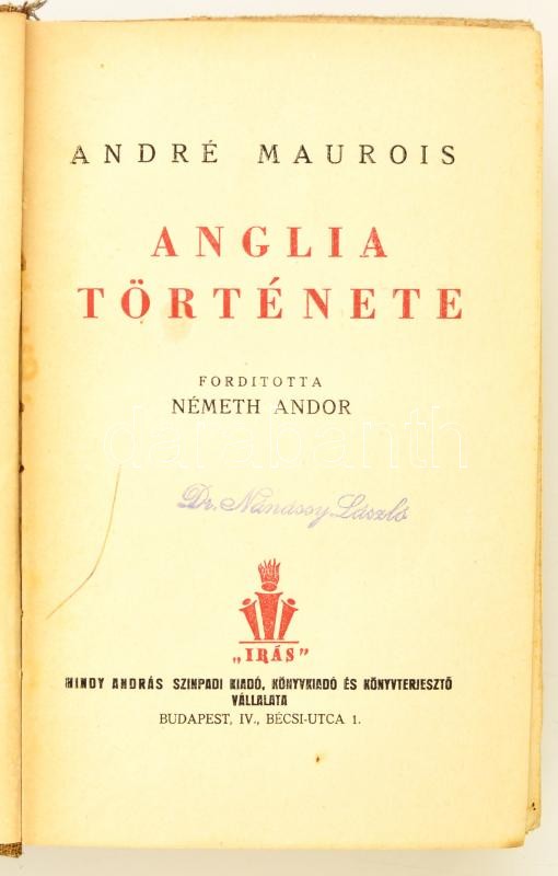 Fordította: Németh Andor. Bp.... https://www.darabanth.com/hu/308-Gyorsarveres/308.0/Konyvek/Konyvek-Tortenelem~600004/Maurois-Andre-Anglia-tortenete-I-II--Forditotta-Nemeth-Andor-Bp-enIras-707-p-Ki~II1647042