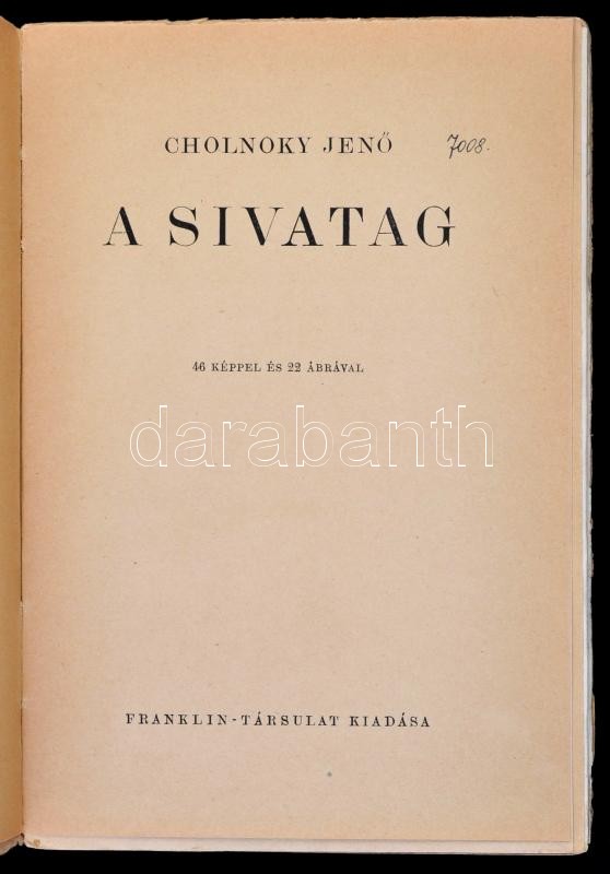 Cholnoky Jenő: A sivatag. Bp., é. n., Franklin. Papírkötésben, ragaszt... https://www.darabanth.com/hu/308-Gyorsarveres/308.0/Konyvek/Konyvek-Utazas-helytortenet~500002/Cholnoky-Jeno-A-sivatag-Bp-e-n-Franklin-Papirkotesben-ragasztott-serult-papir-ved~II1670528