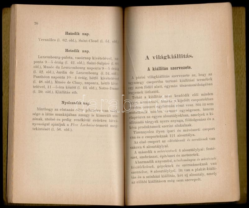 Párisi Kalauz. Kiadja a Magyar Hírlap. Bp.,1900, Pallas, 121+1 t. kihajtható térkép. Kiadói papírkötés. Benne a világkiállításra is vonatkozó információkkal.