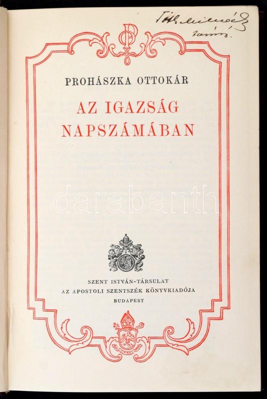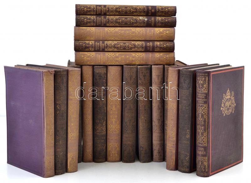 Prohászka Ottokár Összegyűjtött munkái Összesen 20 kötet, nem teljes sorozat. Budapest, 1928, Szent István Társulat. Kiadói díszes, aranyozott egészvászon sorozat-kötésben. Változó, kissé kopott, de többnyire jó állapotban.