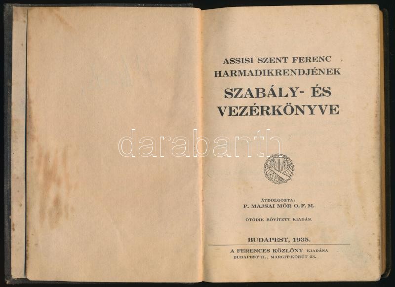 Assisi Szent Ferenc harmadikrendjének szabály és vezérkönyve. Átdolgozta: P. Majsai Mór O.F.M. Bp., 1935, Ferences Közlöny. Ötödik, bővített kiadás. Korabeli kopottas, foltos egészvászon-kötés.