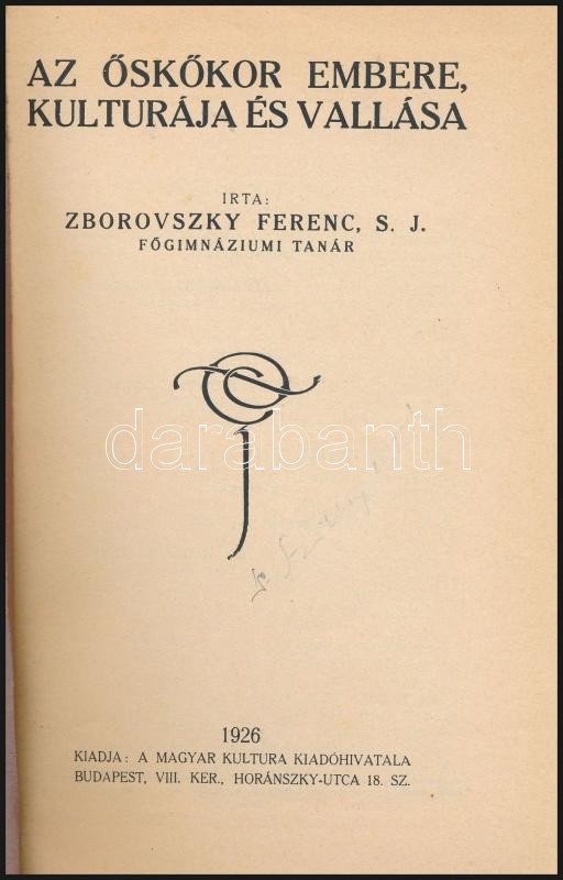 Zborovszky Ferenc: Az őskőkor embere, kultúrája és vallása. Bp., 1926,... https://www.darabanth.com/hu/308-Gyorsarveres/308.0/Konyvek/Konyvek-Vallas~500015/Zborovszky-Ferenc-Az-oskokor-embere-kulturaja-es-vallasa-Bp-1926-Magyar-Kultura-Kiadohi~II1674118