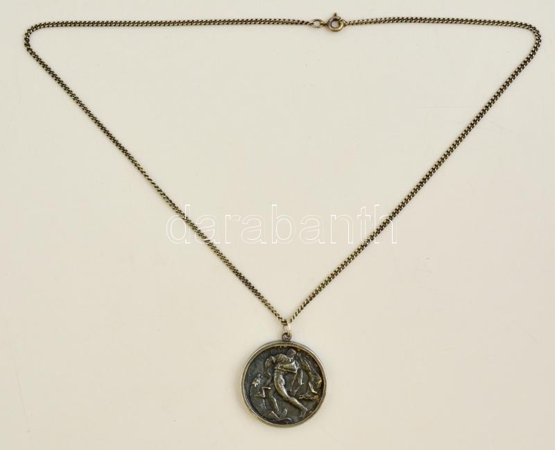 Leírás: Ezüst(Ag) Toldi medál, ezüst foglalatban, fém láncon, nettó: 21,3 g