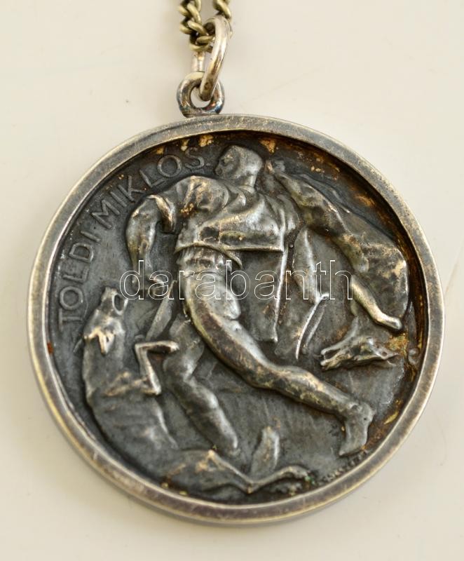 Ezüst(Ag) Toldi medál, ezüst foglalatban, fém láncon, nettó: 21,3 g https://www.darabanth.com/hu/308-Gyorsarveres/308.0/Nemesfem-Disztargyak-Orak-es-Ekszerek/Nemesfem-Disztargyak-Orak-es-Ekszerek~1/EzustAg-Toldi-medal-ezust-foglalatban-fem-lancon-netto-21-3-g~II1674179