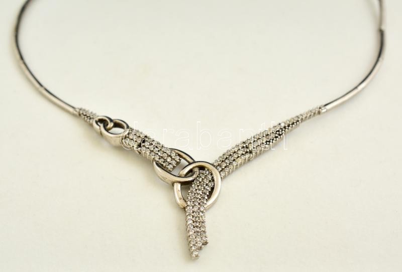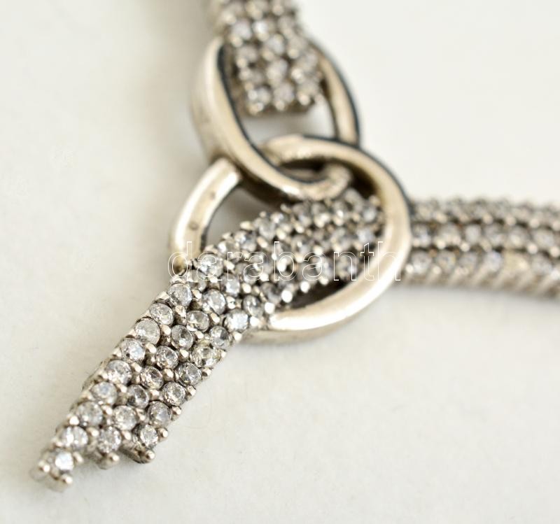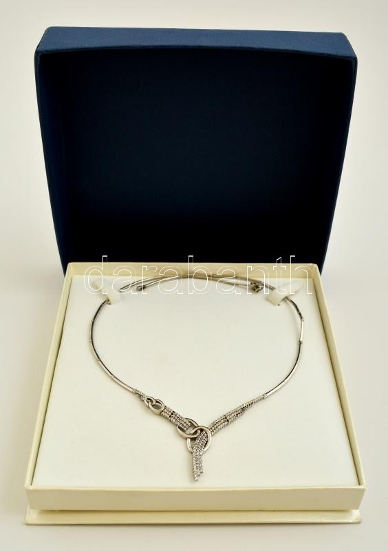 Leírás: Ródiumozott ezüst (Ag.) nyaklánc, cirkónia kövekkel, jelzett, eredeti dobozában, h: 40 cm bruttó: 13 g