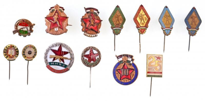 Leírás: 13db-os vegyes jelvény és kitűző tétel a szocialista korszakból, mind "MHSZ - Magyar Honvéd Szövetség" tematikájú T:2,2- zománchiba