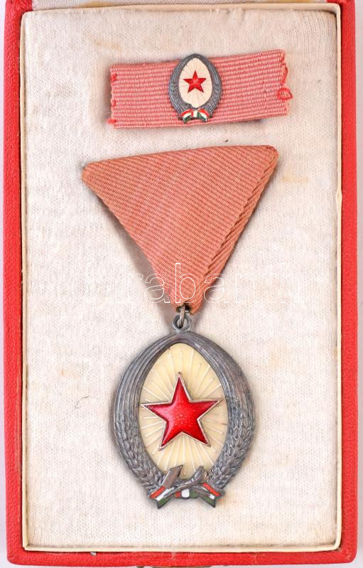 Leírás: 1964. "Munka Érdemrend" ezüst fokozata, zománcozott Br kitüntetés miniatűrrel szalagsávon, eredeti tokban T:2