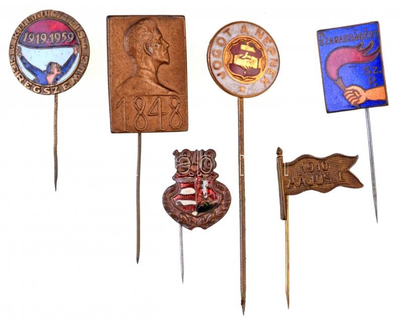 Leírás: 6db-os vegyes magyar kitűző tétel, közte "A Szabadságért SZ. P.", "Jogot a Népnek" T:2 egyikről letört a tű
