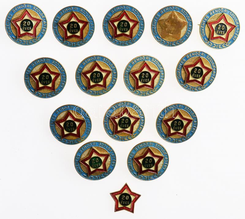Leírás: ~1980. "Önkéntes Rendőri Szolgálatért" 20 év után, zománcozott fém jelvények (14x) (25,5mm) T:2