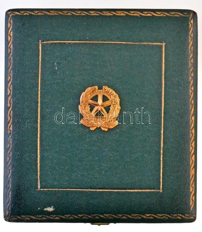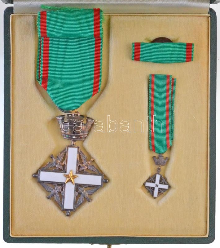 Olaszország 1951-2001. "Olasz Köztársaság Érdemrend Lovagkeresztje" aranyozott és zománcozott Ag kitüntetés, eredeti dísztokban, miniatűrrel és szalagsávval T:2 aranyozás kopott