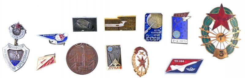 Szovjetunió 12db-os vegyes jelvény és kitűző tétel, közte sok űrrepülés tematikájú T:2