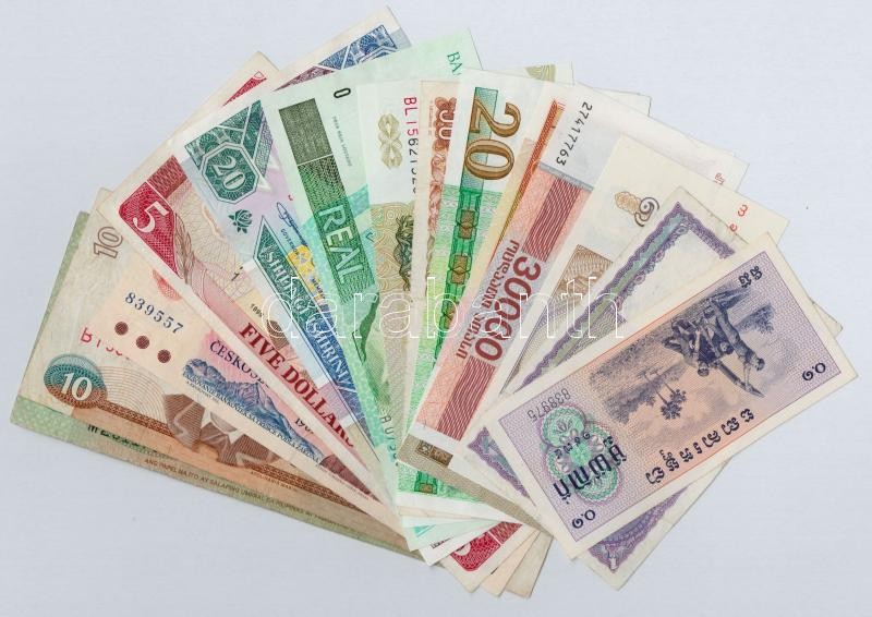 15db-os vegyes külföldi bankjegy tétel, közte Kínai Népköztársaság, Libéria, Brazília, Fülöp-szigetek, Csehszlovákia, Kenya, India, Mianmar, Mongólia, Belgium, NDK, Kambodzsa / Vörös Khmer kiadás és Örményország T:I--III 15pcs of various banknotes, including China / Peoples Republic, Liberia, Brazil, Philippinas, Czechoslovakia, Kenya, India, Myanmar, Mongolia, Belgium, GDR, Cambodia / Khmer Rouge Issue and Armenia C:AU-F