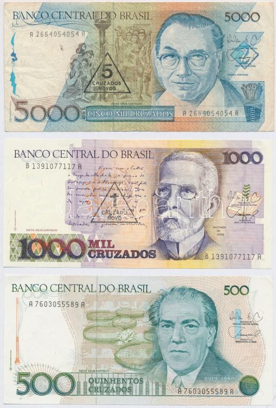Brazília 1986. 500C + 1989. 1000C "1 Cruzado Novo" felülbély... https://www.darabanth.com/hu/308-Gyorsarveres/308.0/Numizmatika/Kulfoldi-bankjegyek~300012/Brazilia-1986-500C-plus-1989-1000C-1-Cruzado-Novo-felulbelyegzessel-plus-5000C-5-Cruzados-Novos-~II1677643