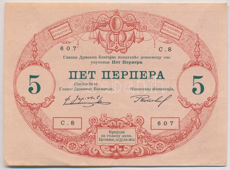 Krause 17 https://www.darabanth.com/hu/308-Gyorsarveres/308.0/Numizmatika/Kulfoldi-bankjegyek~300012/Montenegro-1914-5P-TII--Monenegro-1914-5-Perpera-CXF--Krause-17~II1677390