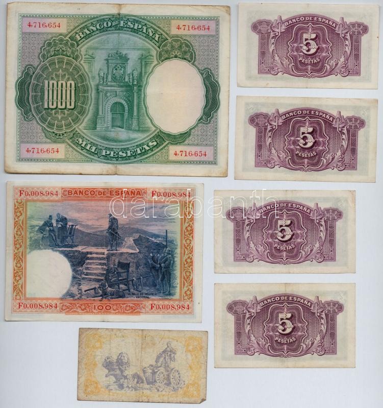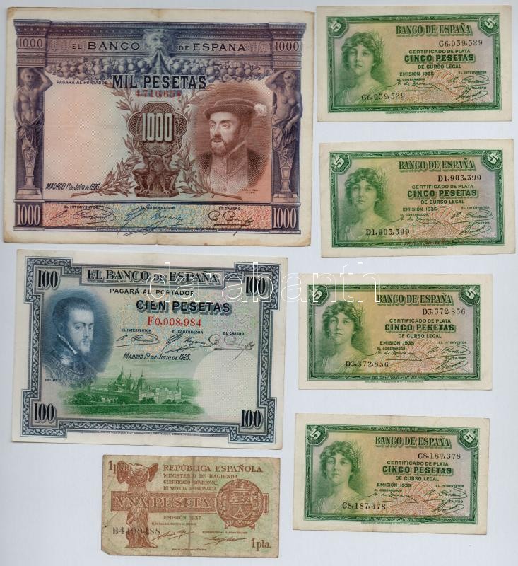 Spain 1925-1937. 1 Peset... https://www.darabanth.com/hu/308-Gyorsarveres/308.0/Numizmatika/Kulfoldi-bankjegyek~300012/Spanyolorszag-1925-1937-1P-1000P-7x-TIII--Spain-1925-1937-1-Peseta--1000-Pesetas-7x-CF~II1675328