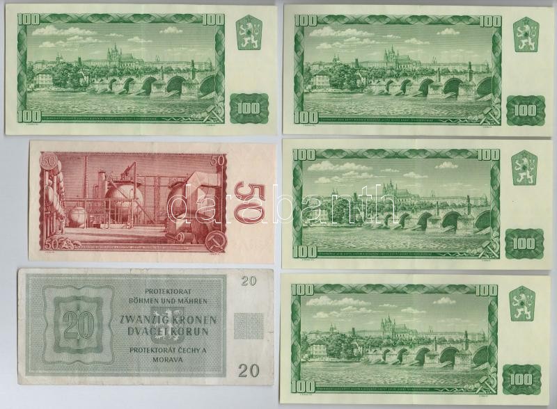 Leírás: Vegyes: Német Harmadik Birodalom / Cseh-Morva Protektorátus 1944. 20K + Csehszlovákia 1961. 100K (4x) 3db sorszámkövető + 1964 (1965). 50K T:II-III-