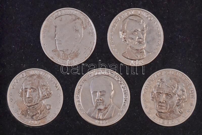 Amerikai Egyesült Államok 1982-1985. 5db-os, amerikai elnököket ábrázoló fém emlékérem tétel, "The National Historic Mint" dobozban T:1-,2