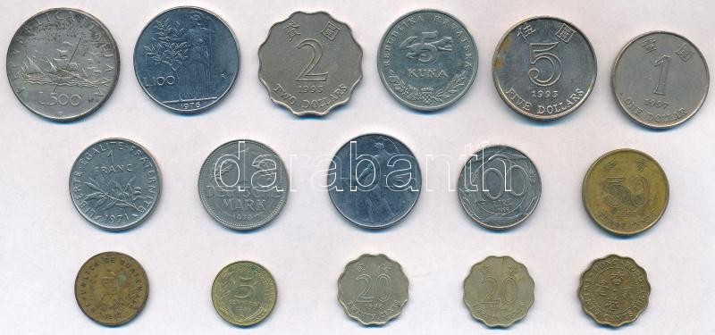 16db-os vegyes külföldi fémpénz tétel, közte Olaszország 1960R 500L Ag "Kolombusz hajói" T:2-3