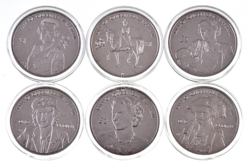 2012. "II. Erzsébet élete" 6db klf Cu-Ni érme különböző verdékből: Brit Virgin-szigetek, Ascension-sziget, Falkland-szigetek, mindegyik tanúsítvánnyal T:1,1-