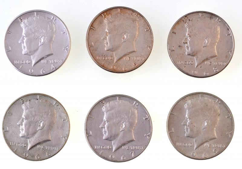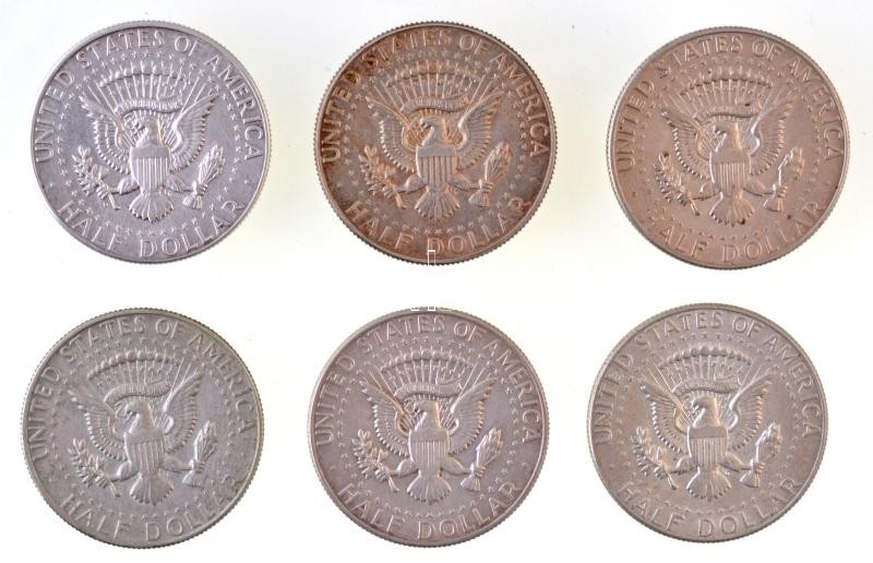 Leírás: Amerikai Egyesült Államok 1964-1969. 1/2$ Ag "Kennedy" (5xklf) T:1-,2 kis patina