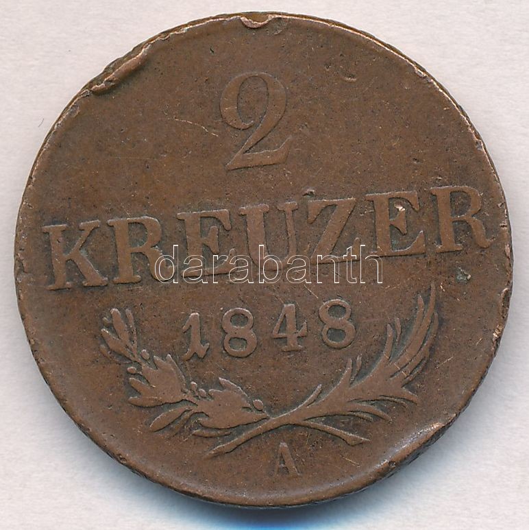 Austria 1848A 2 Kreuzer Cu C:VF edge e... https://www.darabanth.com/hu/308-Gyorsarveres/308.0/Numizmatika/Kulfoldi-fem-es-ezustpenzek~300013/Ausztria-1848A-2kr-Cu-T2-ph--Austria-1848A-2-Kreuzer-Cu-CVF-edge-error--Krause-KM232188~II1638014