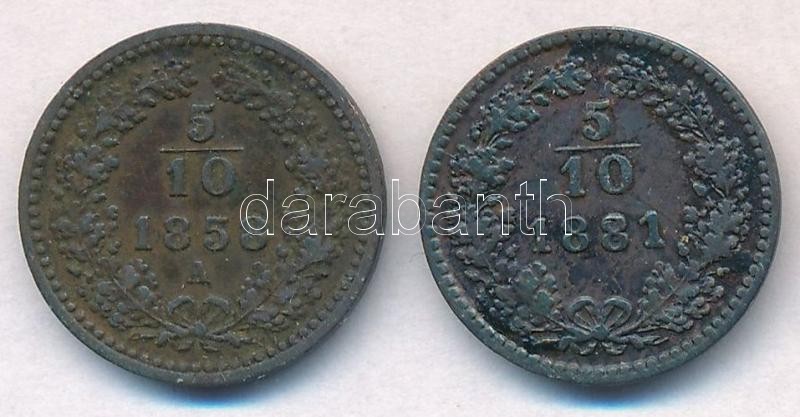 Leírás: Ausztria 1858A 5/10kr Cu + 1881. 5/10kr Cu T:2