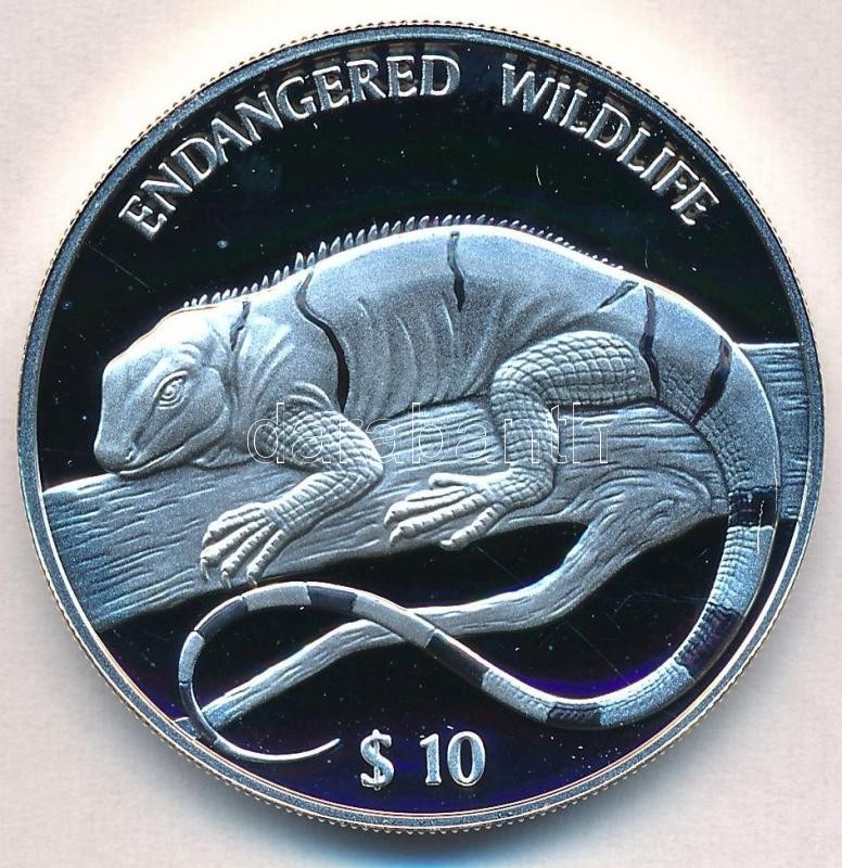 Leírás: Fidzsi-szigetek 1997. 10$ Ag "Szalagos leguán" T:PP