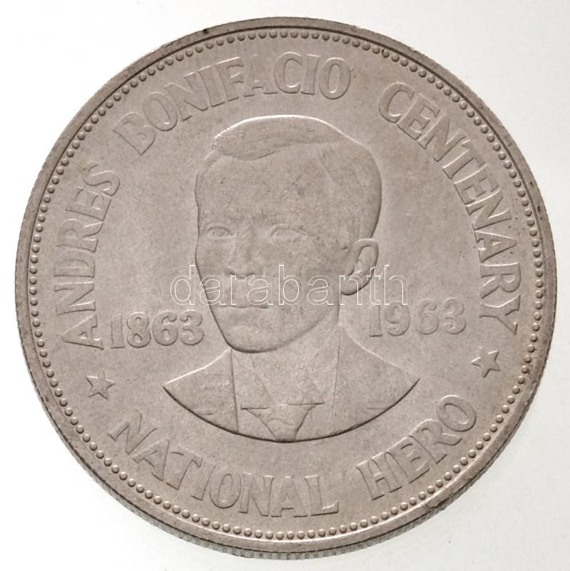 Philippines 1963. 1 Peso Ag "100th Anniversary - Birth of Andres Bonifacio" C:XF