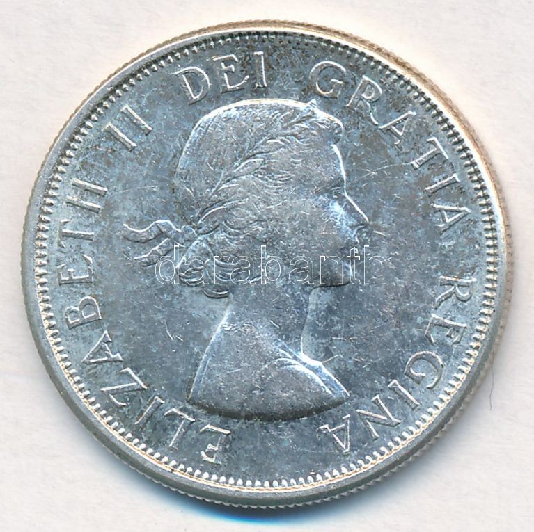 Canada 1963. 50 Cent... https://www.darabanth.com/hu/308-Gyorsarveres/308.0/Numizmatika/Kulfoldi-fem-es-ezustpenzek~300013/Kanada-1963-50c-Ag-II-Erzsebet-T2--Canada-1963-50-Cents-Ag-Elizabeth-II-CXF~II1672310