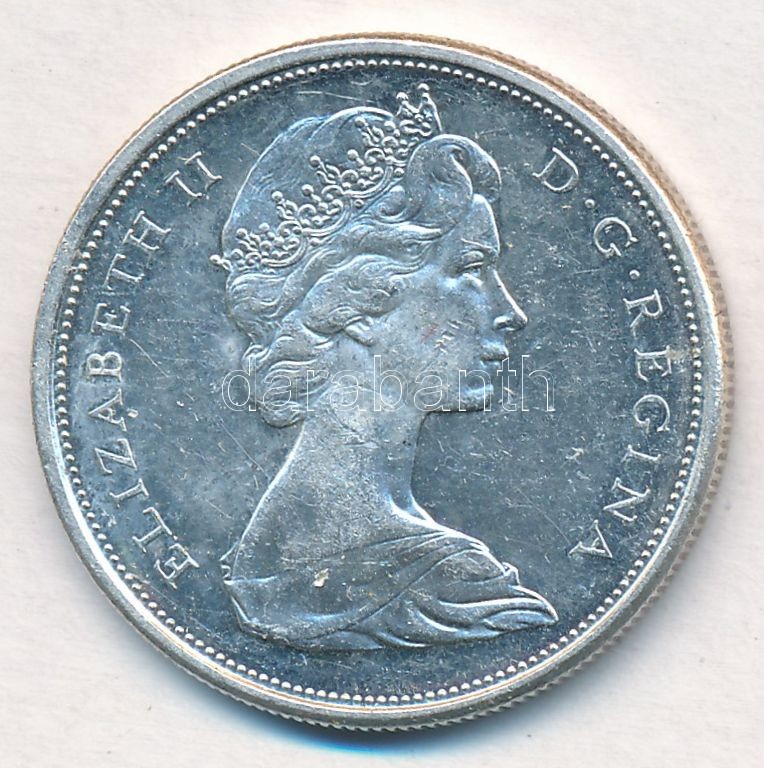Canada 1966. 50 Cent... https://www.darabanth.com/hu/308-Gyorsarveres/308.0/Numizmatika/Kulfoldi-fem-es-ezustpenzek~300013/Kanada-1966-50c-Ag-II-Erzsebet-T2--Canada-1966-50-Cents-Ag-Elizabeth-II-CXF~II1672314