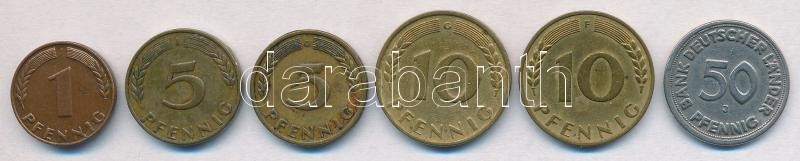 FRG 1948J 1 Pfennig + 1949G 5 Pfennig + 1949J 5 Pfennig + 1949F 10 Pfennig + 1949G 10 Pfennig + 1949J 50 Pfennig C:XF,VF