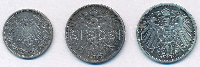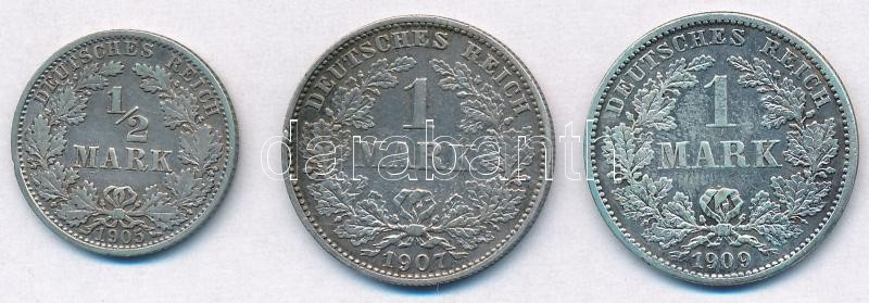 Német Birodalom 1905A 1/2M Ag + 1907E 1M Ag + 1909G 1M Ag T:2,2- kis ph.