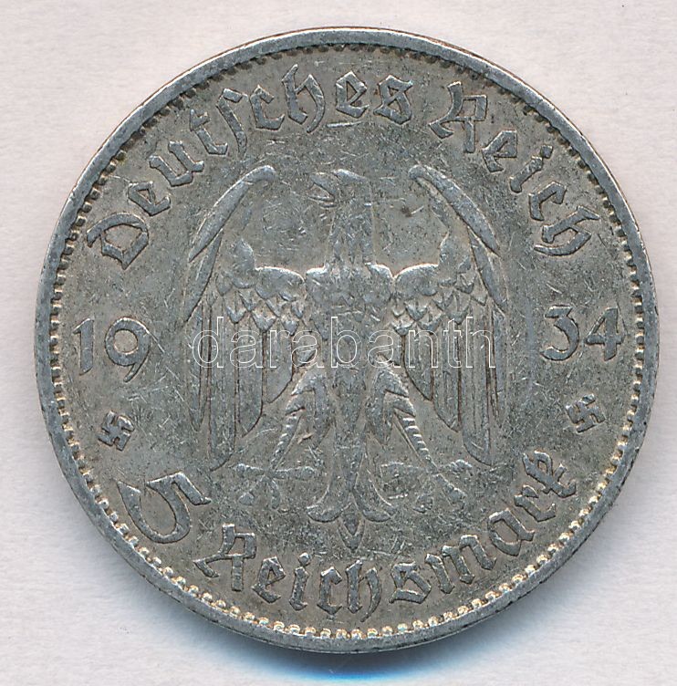 German Third Reich 1934A 5 Marks Ag "1st Anniversary of Nazi rule" C:XF,VF