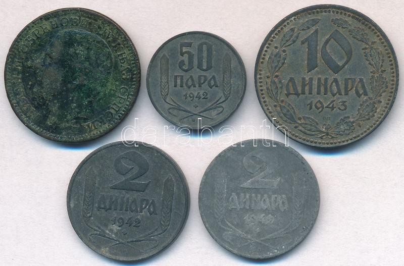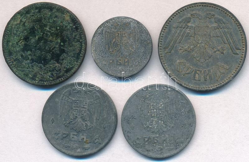 Leírás: Szerbia 1879. 5p Br "I. Milán" + Német megszállás 1942. 50p Zn + 2D Zn (2x) + 1943. 10D Zn T:2,2- patina