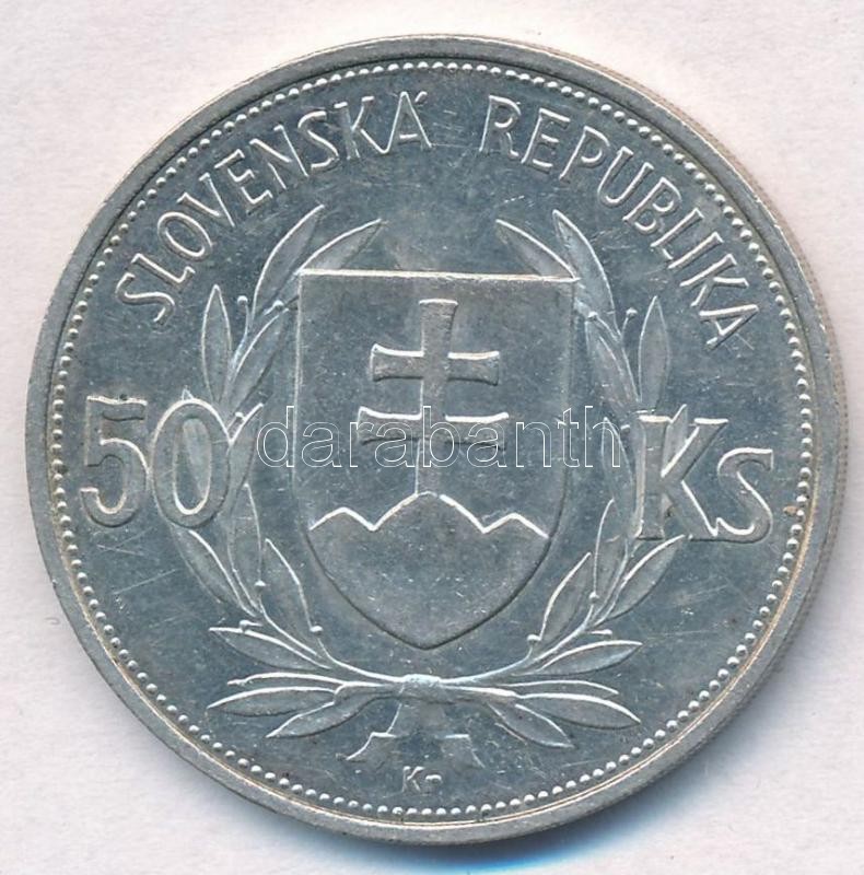 Leírás: Szlovákia 1944. 50K Ag "Függetlenség 5. évfordulója" T:1- Slovakia 1944. 50 Korun Ag "5th Anniversary of Independence" C:AU