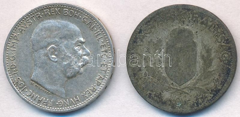 Vegyes: Ausztria 1914. 1K Ag "Ferenc József" + Magyarország 1926. 1P Ag T:2,3