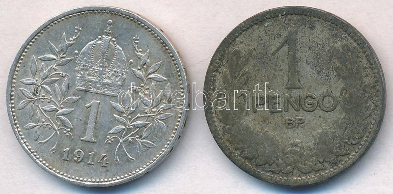 Mixed: Austria 1914. 1 Corona Ag "Franz Joseph" + Hungary 1926. 1 Pengő Ag C:XF,F