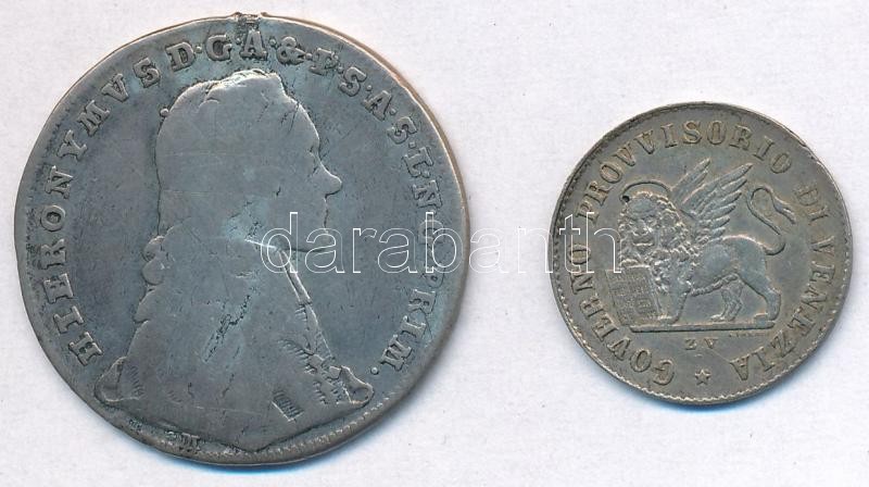 Vegyes: Osztrák Államok / Salzburg 1775M 20kr Ag "Hieronymus" (6,3g) + Olasz Államok / Velence / Forradalom 1848ZV 15c Ag (1,65g) T:3,2 fülnyom a 20kr-on