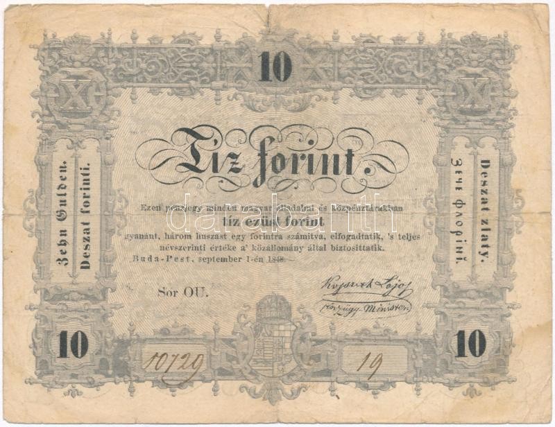 Leírás: 1848. 10Ft "Kossuth bankó" T:III,III-