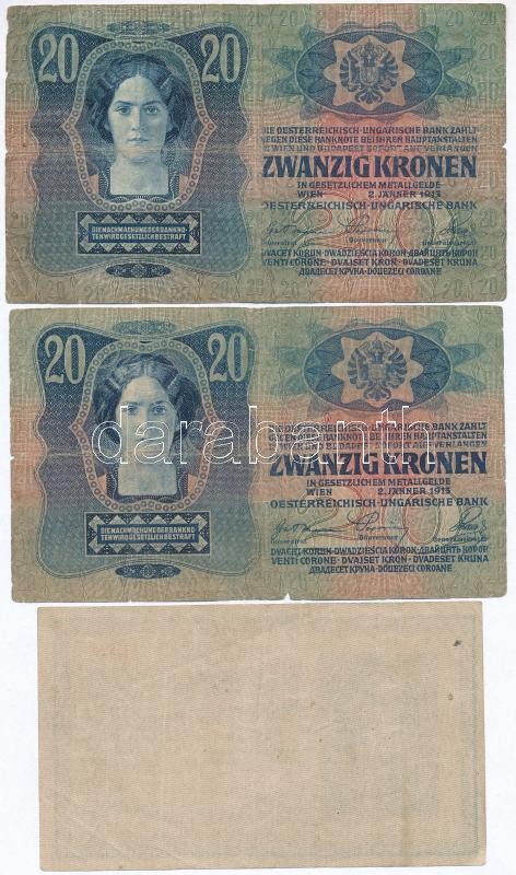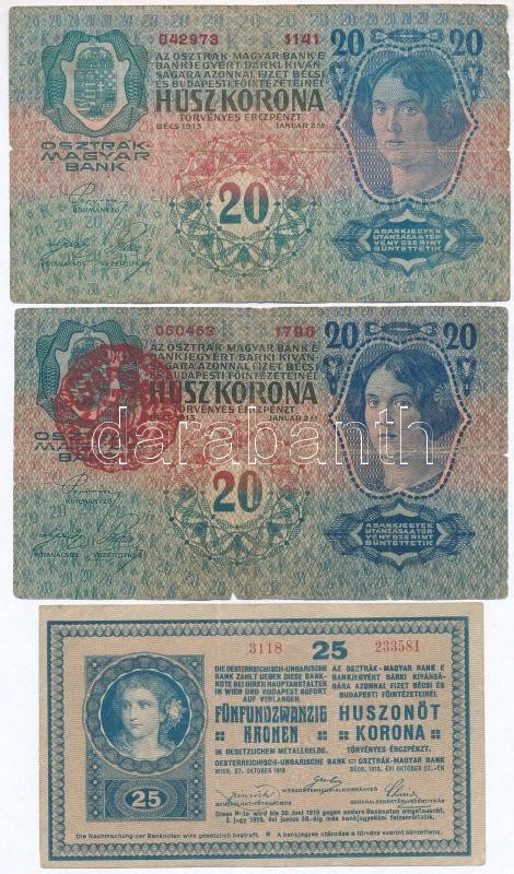 1913. 20K + 1913. 20K piros "MAGYARORSZÁG" felülbélyegzéssel... https://www.darabanth.com/hu/308-Gyorsarveres/308.0/Numizmatika/Magyar-bankjegyek~300007/1913-20K-plus-1913-20K-piros-MAGYARORSZAG-felulbelyegzessel-plus-1918-25K-3118-3mm-hullamos-~II1670396